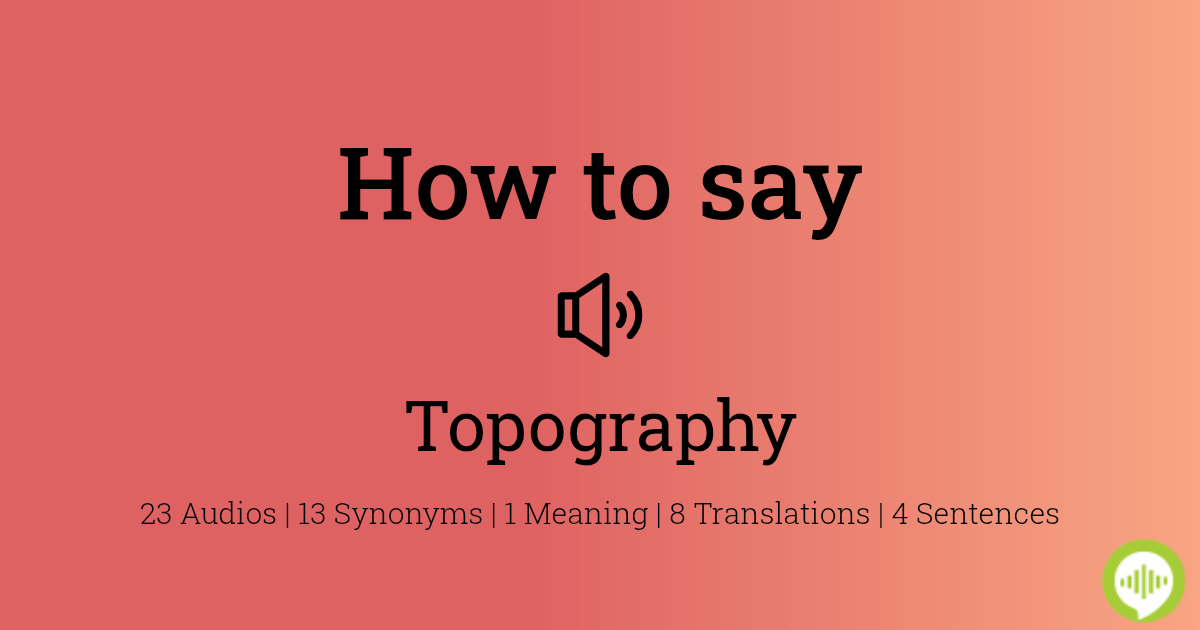 Web Pronunciation of topography with 2 audio pronunciations 3 ratings 1 rating International Phonetic Alphabet IPA IPA. Web Learn how to pronounce Topography in English with video audio and syllable-by-syllable spelling from the United States and the United Kingdom. This word has 9 sounds.